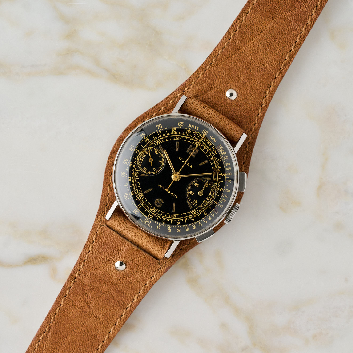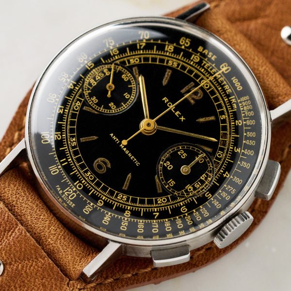 Márka: Rolex Modell: Chronograph Referencia: 3484 Számlap: Fekete Gilt, tachymeter és telemeter skálákkal Tokméret: 33 mm Tok anyaga: Rozsdamentes acél Szíj / Karkötő anyaga: Barna bőrszíj Szerkezet: Mechanikus, kézi felhúzás Üveg: Plexi Állapot: Kiváló Tájékoztató ár: 37.982.000 forint