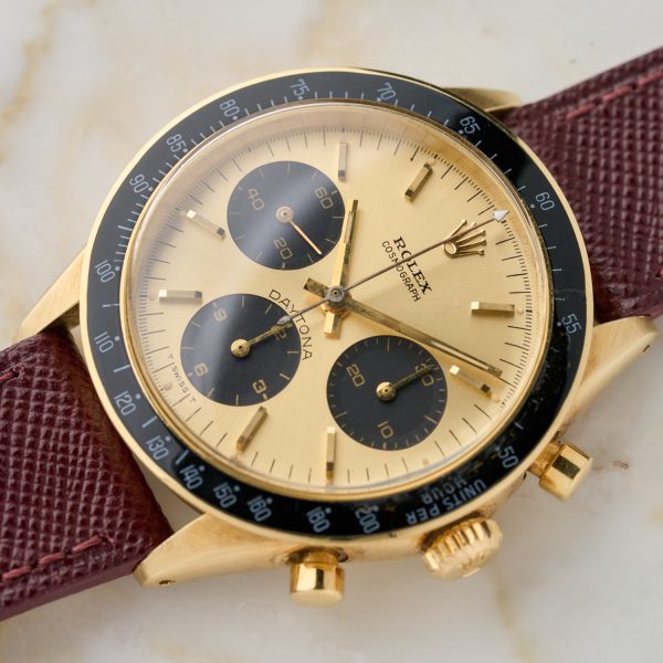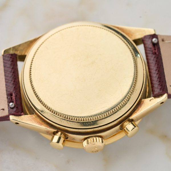 Rolex Daytona 6241 – 1967 – 14K sárga arany – Burgundi Saffiano bőrszíj Rolex ardillon csattal – Carlo Pergola Expertise – Kiváló állapot WR9951